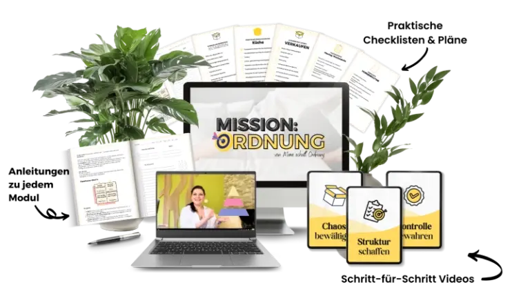 Erfahre, wie du endlich dauerhaft Ordnung in dein Zuhause bringst, ohne stundenlang aufräumen zu müssen.